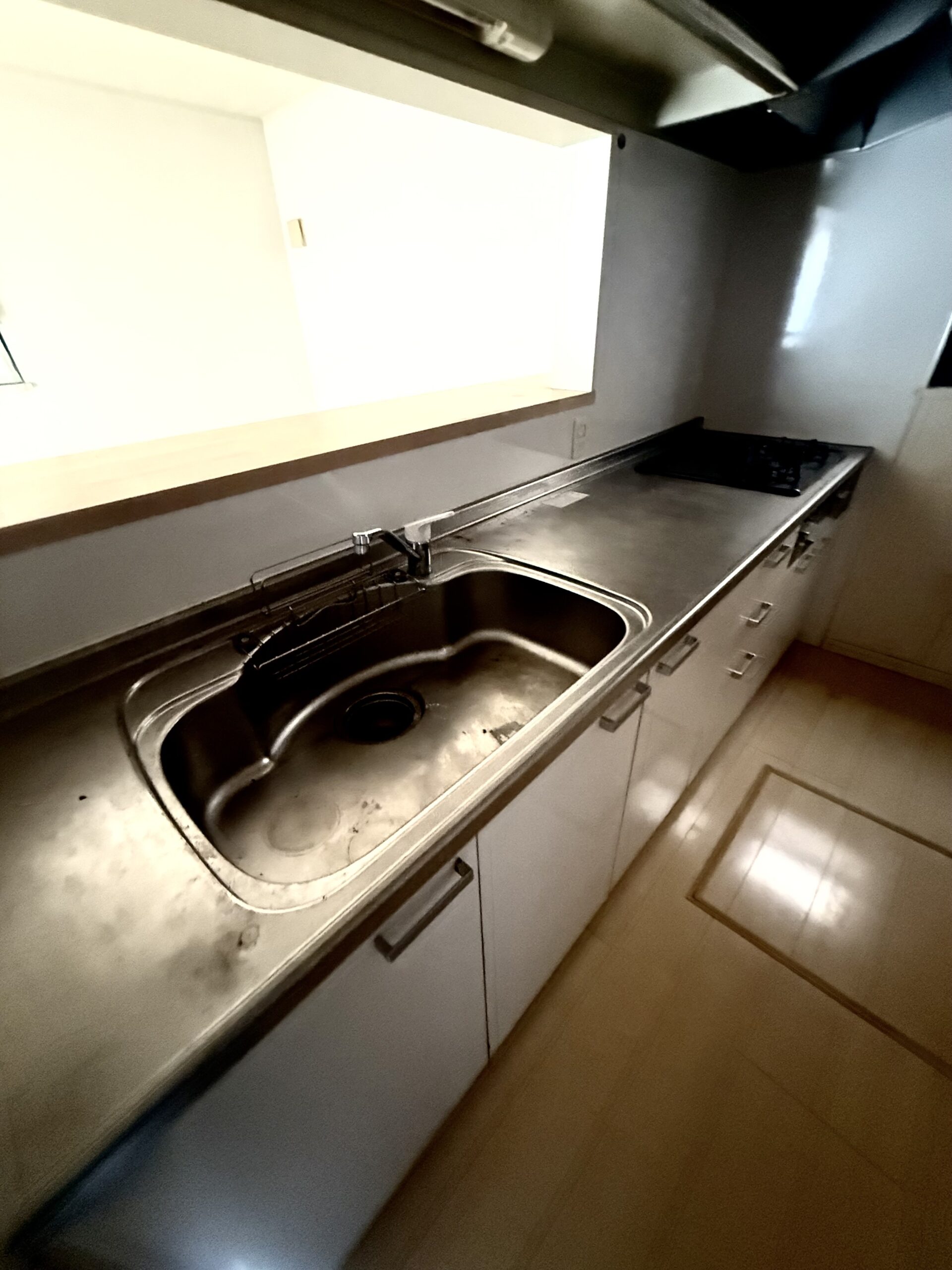 長年頑張って来られた証拠であるキッチンの、五徳や魚グリルの焦げ付き、レンジフード、