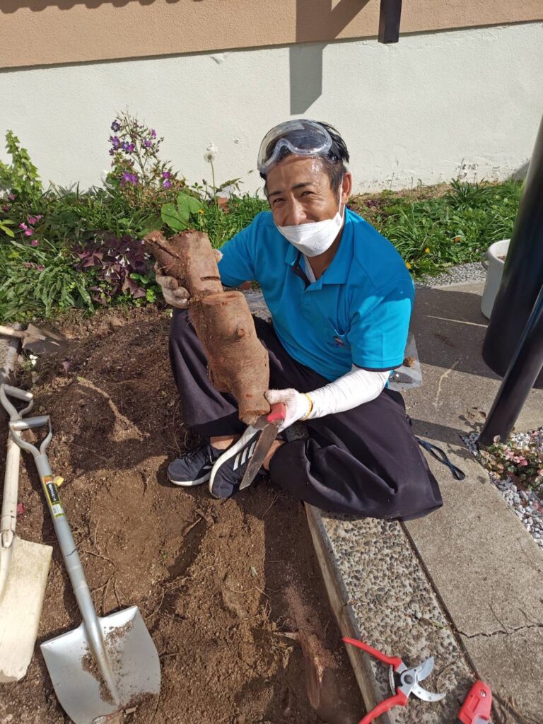 花壇の伐根のご依頼をいただきました。芋掘りではありません!w